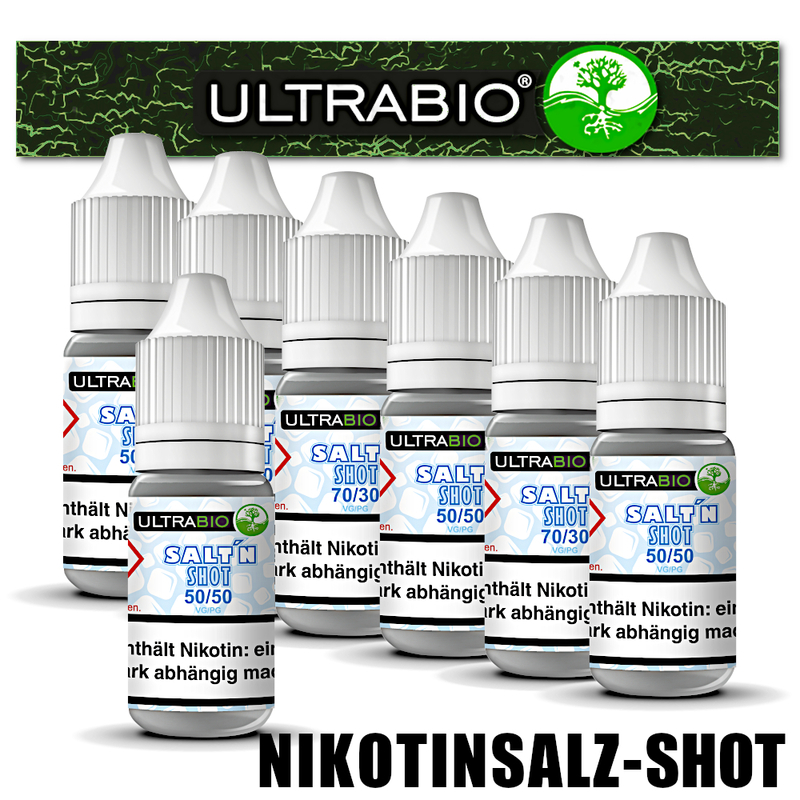 ACHTUNG: Es handelt sich hier um Nikotinsalz Shots von Ultrabio und sind geschmacksneutral. Zur Auswahl steht einmal das Mischverhältnis 50PG/50VG und 70VG/30PG, sowie die Nikotinstärke von 20 mg.