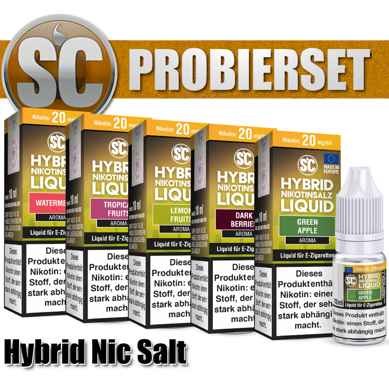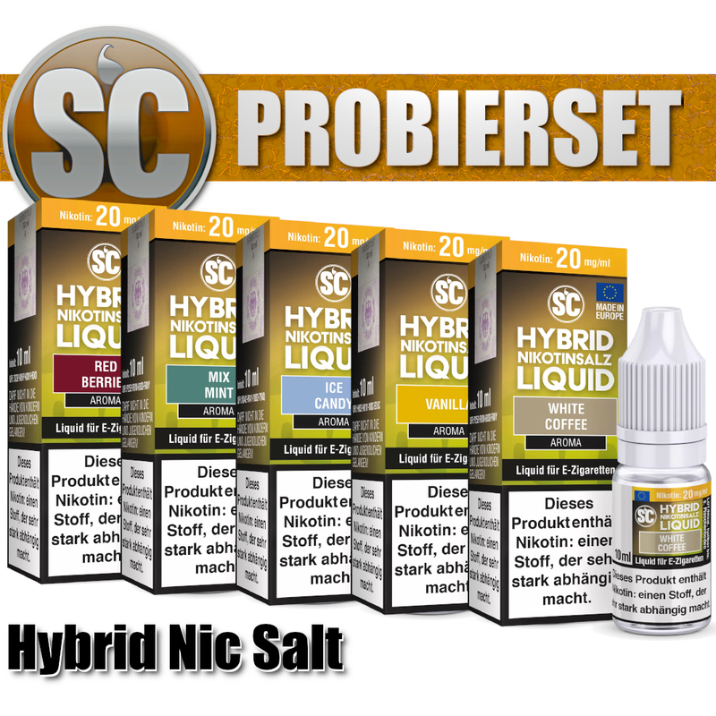 SC Hybrid Nikotinsalz ist versetzt mit normalen Nikotin zwei arten Nikotinsalz --> (Malat und Benzoat). Wir bieten Ihnen zum Sparpreis 5 Flaschen aromatisierten SC Hybrid Liquid pro Sorte. Dabei stehen Ihnen 15 verschiedene Geschmacksorten und drei Nikotinstärken zur Verfügung.