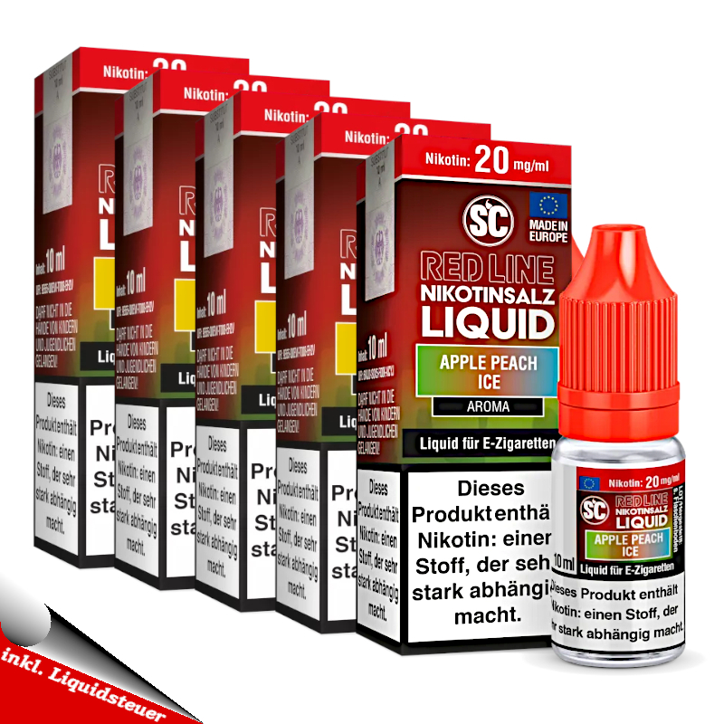 5x 10ml SC RED LINE Apple Peach Ice kein Nikotin