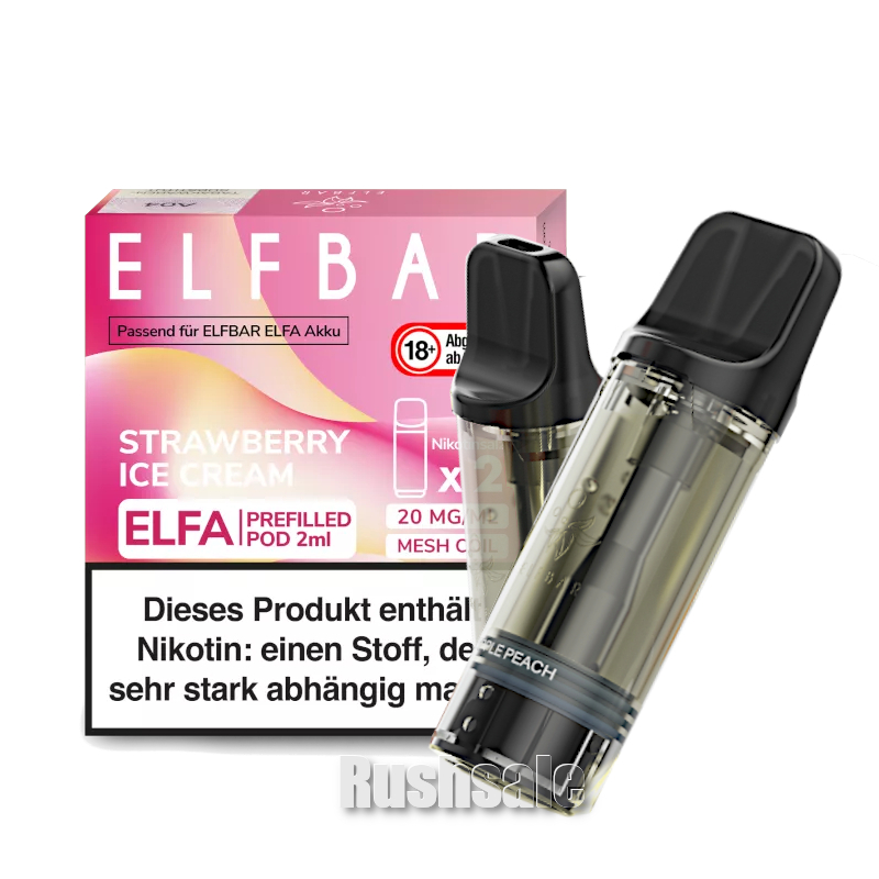 Dieses Angebot behinhaltet die ELFA Einweg Pods, welche einen vorinstallierten Meshcoil besitzen und mit 2 ml aromatisierten Liquid sowie einer Nikotinstärke von 20mg/ml Nikotinsalz, vorgefüllt sind. Und den passenden Akku mit einer Ladekapazität von 500 mAh.