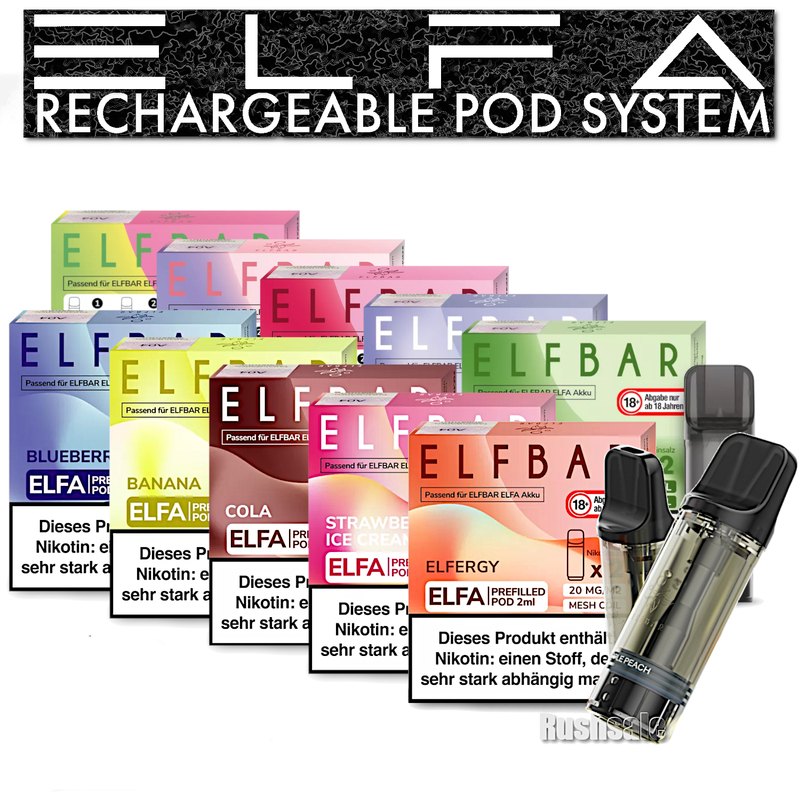 Dieses Angebot behinhaltet die ELFA Einweg Pods, welche einen vorinstallierten Meshcoil besitzen und mit 2 ml aromatisierten Liquid sowie einer Nikotinstärke von 20mg/ml Nikotinsalz, vorgefüllt sind. Und den passenden Akku mit einer Ladekapazität von 500 mAh.